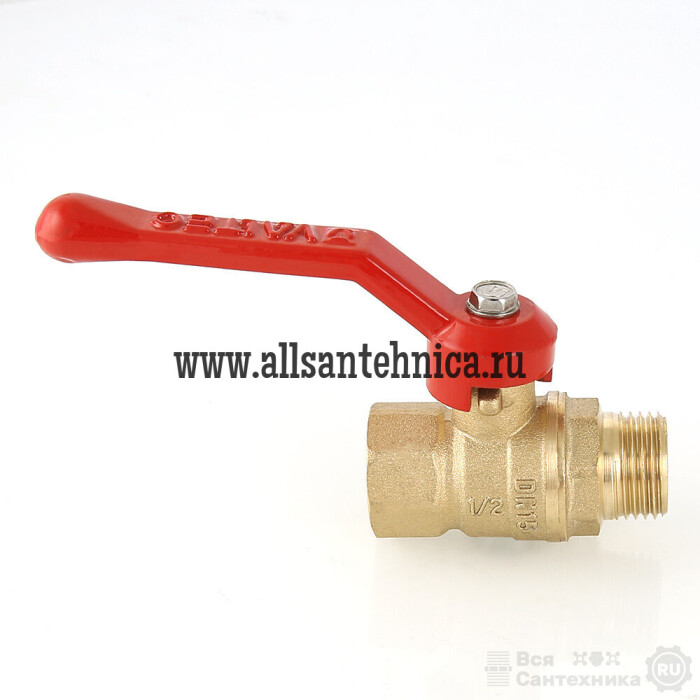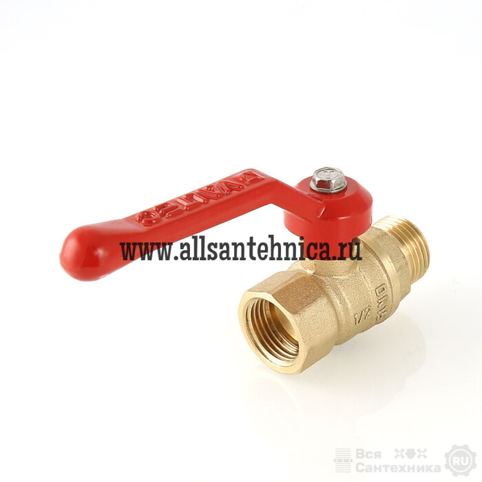 (VT.121.G) Полнопроходной ремонтопригодный шаровой кран стандартного ресурса. Выполнен из из латуни марки ЛЦ40Сд (ГОСТ 17711-93). Рукоятка крана – флажкового типа, изготовленная из силумина марки АК7 (ГОСТ 1583-93) с покрытием эпоксиполиэфирной порошковой композицией красного цвета. Резьба присоединений – внутренняя/наружная.