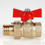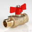 (VT.127.GN) Полнопроходной ремонтопригодный шаровой кран стандартного ресурса. Выполнен из из латуни марки ЛЦ40Сд (ГОСТ 17711-93). Кран оснащен ручкой типа «бабочка», изготовленной из силумина марки АК7 (ГОСТ 1583-93) с покрытием эпоксиполиэфирной порошковой композицией красного цвета. Соединен накидной гайкой с резьбовым полусгоном. Резьба присоединений – внутренняя/наружная. Допустимая температура рабочей среды составляет – от +1 до +110 °С.
