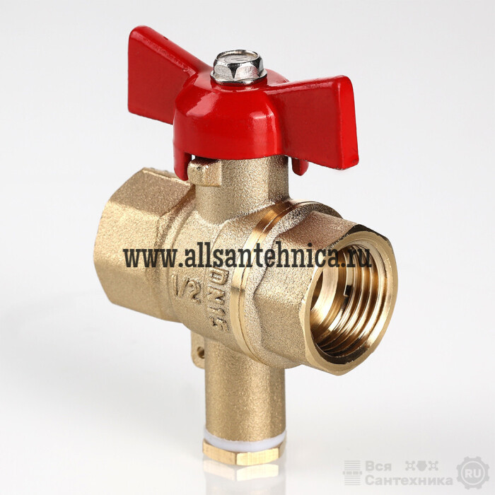 (VT.128.GN) Полнопроходной ремонтопригодный шаровой кран стандартного ресурса. Выполнен из из латуни марки ЛЦ40Сд (ГОСТ 17711-93). Кран оснащен ручкой типа «бабочка», изготовленной из силумина марки АК7 (ГОСТ 1583-93) с покрытием эпоксиполиэфирной порошковой композицией красного цвета. Кран оснащен штуцером для подключения датчика температуры погружного типа. Применяется в составе узлов учета расхода тепловой энергии и арматурных модулей для водяного теплого пола.