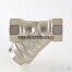 (VT.192.N) Фильтр механической очистки косого типа. Может устанавливаться в горизонтальном и вертикальном (движение потока – сверху–вниз) положении. Корпус и пробка фильтров изготовлены горячим прессованием из латуни марки CW617N (европейский стандарт EN 12165) и никелированы. Между ними корпусом и пробкой, имеющей отверстие для пломбировки, предусмотрена тефлоновая уплотнительная прокладка. Размер ячеек сетки фильтрующего элемента – 500, 800 и 1000 мкм, соответственно для моделей с Ду 1/2–1; 1 1/4–1 1/2 и 2". Максимальное рабочее давление – 20 или 16 бар. Максимальная рабочая температура фильтруемой среды – 150 °C. Резьба присоединения – внутренняя.
