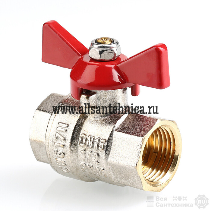 (VT.217.N) Полнопроходной ремонтопригодный шаровой кран с увеличенным ресурсом. Корпус – латунный, никелированный. Оснащен ручкой типа «бабочка» с утолщенной стенкой из алюминиевого сплава и эпоксидной покраской. Резьба присоединений – внутренняя/внутренняя.