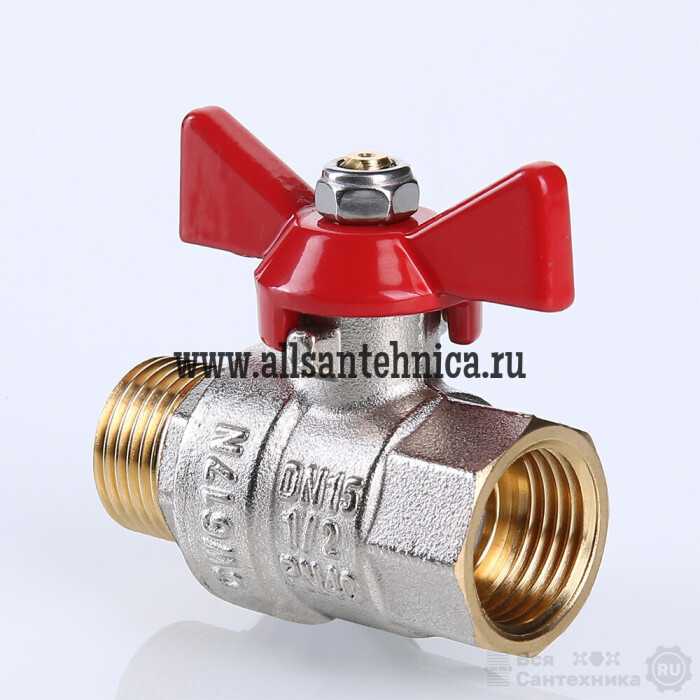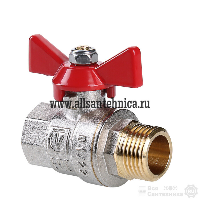 (VT.218.N) Полнопроходной ремонтопригодный шаровой кран с увеличенным ресурсом. Корпус – латунный, никелированный. Оснащен ручкой типа «бабочка» с утолщенной стенкой из алюминиевого сплава и эпоксидной покраской. Резьба присоединений – внутренняя/наружная.