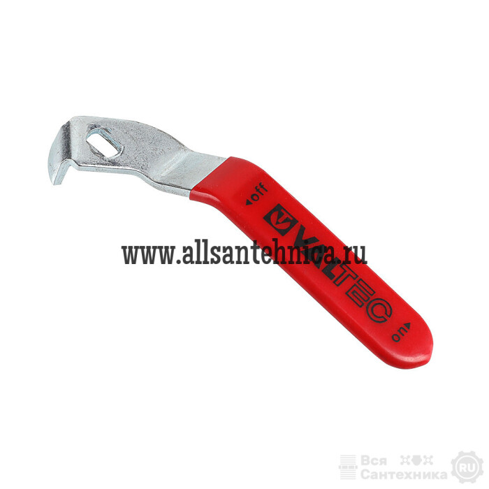 (VT.220.S) Флажковая рукоятка для шарового крана серии VALTEC BASE. Выполнена из оцинкованной стальной пластины увеличенной толщины, оснащена теплоизоляционным покрытием из ПВХ красного цвета.
