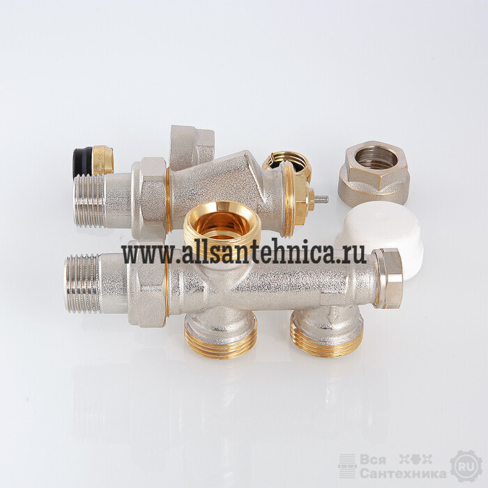 Резьба присоединений – наружная. Диаметр патрубка для подключения к радиатору – 1/2". Подключение труб – по стандарту «евроконус», 3/4". Рабочая температура – до 120 °С, давление – до 10 бар.