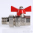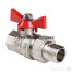 (VT.227.N) Прямой полнопроходной ремонтопригодный шаровой кран с увеличенным ресурсом. Соединен накидной гайкой с резьбовым полусгоном. Корпуса деталей – латунные, никелированные. Кран оснащен ручкой типа «бабочка» с утолщенной стенкой из алюминиевого сплава и эпоксидной покраской. Резьба присоединений – внутренняя/наружная.