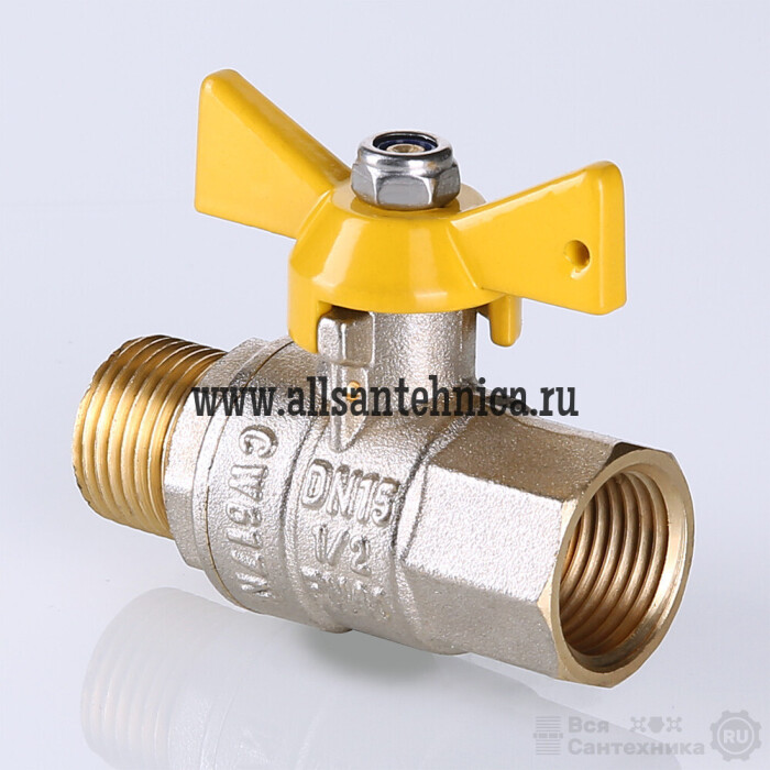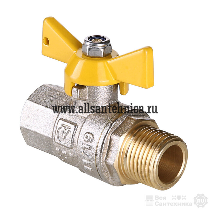 (VT.278.N) Латунный никелированный кран, предназначенный для использования в качестве запорной арматуры на газопроводах низкого и среднего давления. Оснащен алюминиевой ручкой типа «бабочка». Резьба присоединений – внутренняя/наружная.