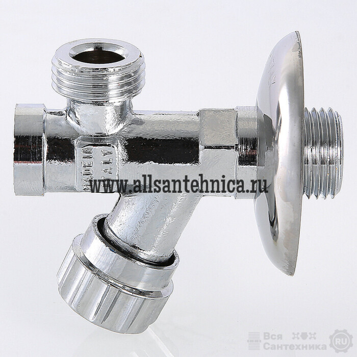 (VT.282.GBC) Вентиль VT.282.GBC предназначен для подключения к водопроводной сети сантехнических приборов. Вентиль позволяет перекрывать и регулировать подачу воды к потребителю и оснащен фильтром механической очистки. Неремонтопригодный. Резьба присоединений – наружная/наружная. Патрубок подключения к смесителю (модель 1/2" х М10) снабжен латунной никелированной накидной гайкой. Предусмотрена декоративная чашка. Диаметр резьбы подключения к трубопроводу – 1/2".