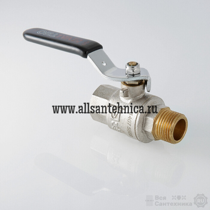 (VT.315.N) Полнопроходной усиленный шаровой кран. Рекомендуется к применению в случаях, когда на арматуру возможна передача изгибающих моментов из-за несоосности или температурных деформаций трубопроводов. Материал корпуса и затвора – латунь CW602N, стойкая к вымыванию цинка, седельных колец и сальниковых уплотнений – тефлон с термоприсадками. Ремонтопригодный. Длина резьбы увеличена для создания более плотных соединений. Кран допускается к использованию при температуре от –20 до +150 °С. Рукоятка – стальная флажковая. Резьба присоединений – внутренняя/наружная.