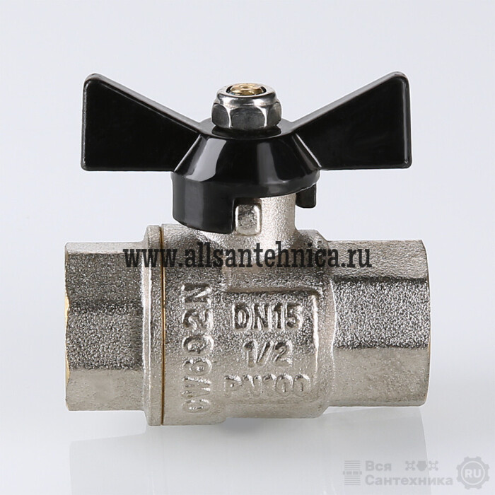 (VT.317.N) Полнопроходной усиленный шаровой кран. Рекомендуется к применению в случаях, когда на арматуру возможна передача изгибающих моментов из-за несоосности или температурных деформаций трубопроводов. Материал корпуса и затвора – латунь CW602N, стойкая к вымыванию цинка, седельных колец и сальниковых уплотнений – тефлон с термоприсадками. Ремонтопригодный. Длина резьбы увеличена для создания более плотных соединений. Кран допускается к использованию при температуре от –20 до +150 °С. Тип рукоятки – «бабочка». Резьба присоединений – внутренняя/внутренняя.
