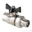 (VT.327.N) Полнопроходной усиленный шаровой кран. Рекомендуется к применению в случаях, когда на арматуру возможна передача изгибающих моментов из-за несоосности или температурных деформаций трубопроводов. Материал корпуса и затвора – латунь CW602N, стойкая к вымыванию цинка, седельных колец и сальниковых уплотнений – тефлон с термоприсадками. Ремонтопригодный. Длина резьбы увеличена для создания более плотных соединений. Кран допускается к использованию при температуре до +120 °С (снижение характеристики обусловлено наличием полусгона с уплотнением из EPDM). Тип рукоятки – «бабочка». Модель укомплектована присоединительным полусгоном. Резьба присоединений – внутренняя/наружная.