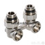 Клапан снабжен шаровыми затворами для перекрытия потока. Резьба патрубков для присоединения труб – наружная, 3/4", «евроконус». Патрубки для подключения к радиатору укомплектованы самоуплотняющимися адаптерами с резьбой 1/2" (в комплекте – 2 шт.).