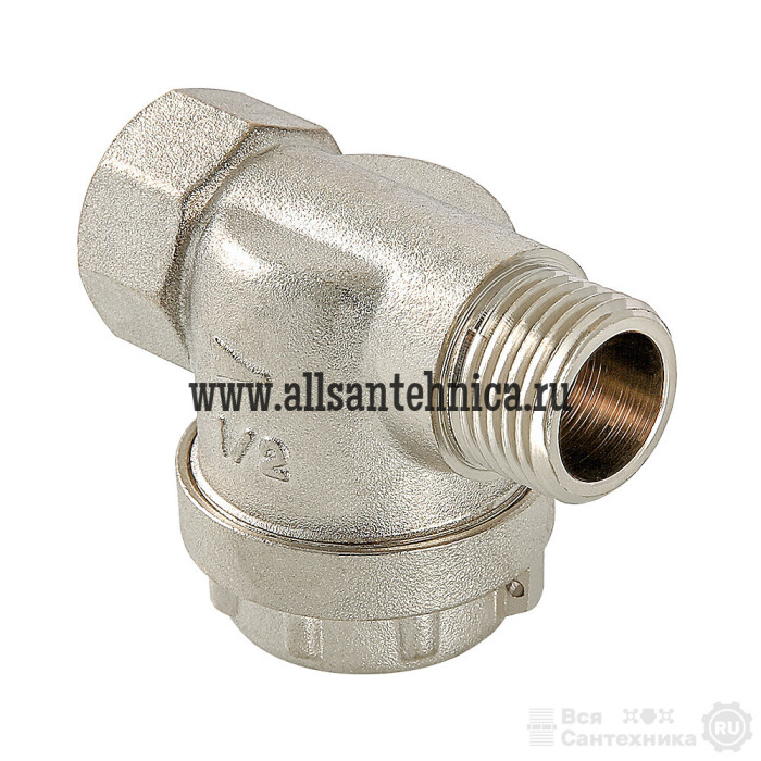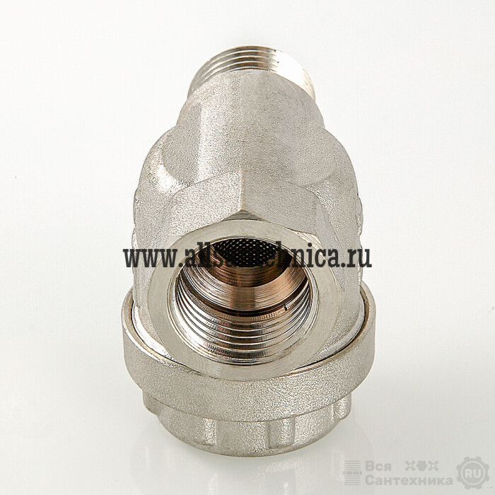 (VT.387.N) Фильтр механической очистки прямого типа. Устанавливается в горизонтальном положении, пробкой вниз. Корпус и пробка фильтра выполнены из латуни марки CW617N (европейский стандарт EN 12165), никелированы. Между ними имеется уплотнительное кольцо из EPDM. Пробка оснащена отверстием для пломбировки. Размер ячеек сетки фильтрующего элемента из нержавеющей стали – 300 мкм, максимальное рабочее давление – 16 бар. Максимальная рабочая температура фильтруемой среды – 110 °C. Резьба присоединения – внутренняя/наружная.