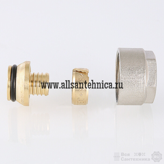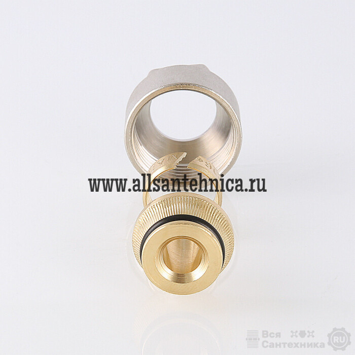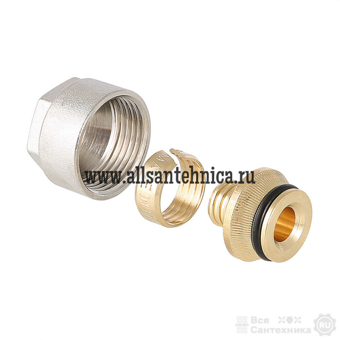 (VT.4410.NE) Латунные фитинги с накидной гайкой и обжимным кольцом для подключения пластиковой (из сшитого полиэтилена и др.) трубы к коллектору VALTEC с выходами диаметром 3/4", стандарт соединения – «евроконус».