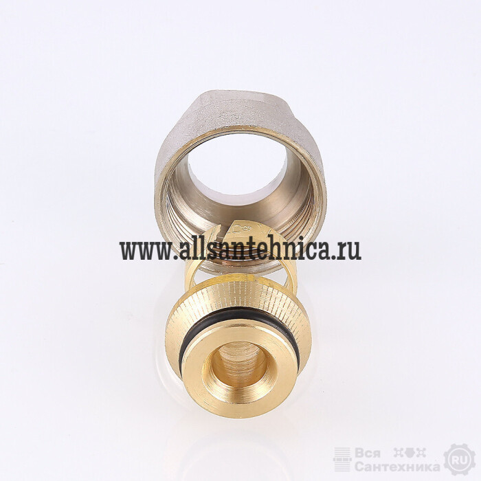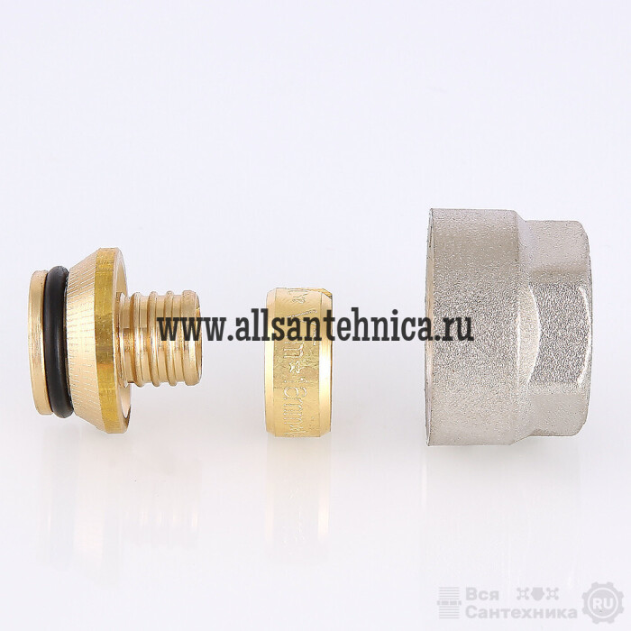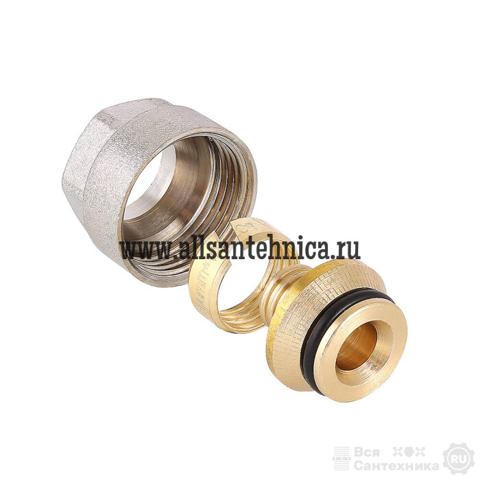 (VT.4410.NVE) Латунные фитинги с накидной гайкой и обжимным кольцом для подключения пластиковой (из сшитого полиэтилена и др.) трубы к выходам коллектора или патрубкам арматуры диаметром 3/4", стандарт соединения – «евроконус».