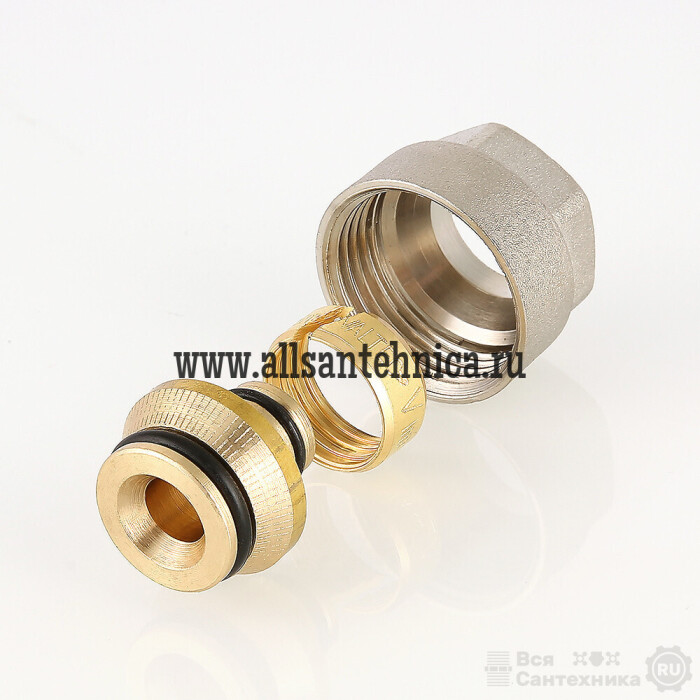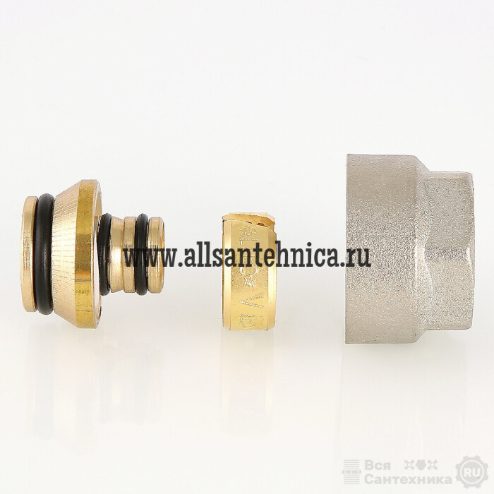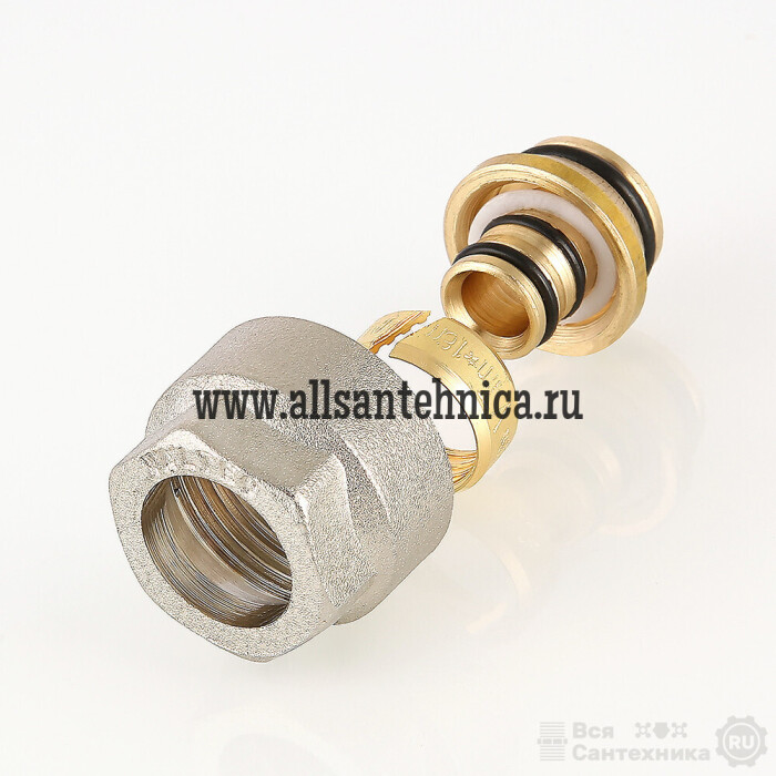 (VT.4420.NVE) Латунный фитинг с накидной гайкой и обжимным кольцом для подключения металлополимерной трубы к выходам коллектора или патрубкам иной арматуры диаметром 3/4", стандарт соединения – «евроконус».
