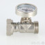 (VT.4615.0) Тройник с термометром предназначен для контроля температуры теплоносителя в трубопроводных петлях теплого пола или другой системы. Подключение к коллектору – по стандарту «евроконус» (имеется накидная гайка), резьба для присоединения трубопровода – наружная, 3/4". Тройник выполнен из латуни марки CW617N, никелирован; материал уплотнений – синтетический каучук EPDM. Может устанавливаться как на падающий, так и на обратный коллектор. Укомплектован механическим термометром VT 0617 (погрешность измерений – 3 %, диапазон шкалы – от 0 до 80 °C, диаметр – 41 мм). Максимальная рабочая температура теплоносителя – 120 °C, максимальное рабочее давление – 10 бар.