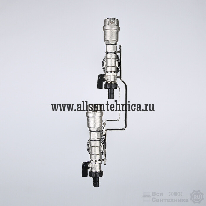Выходы обратного коллектора блока VTс.588 оборудованы регулировочными клапанами с возможностью установки электротермических сервоприводов, подающего – настроечными микрометрическими клапанами. Коллекторы оснащены воздухоотводчиками с отсекающими клапанами, дренажными кранами. Стандарт присоединения трубных петель – «евроконус». В комплект входит пара сдвоенных кронштейнов VTc.130.IN.