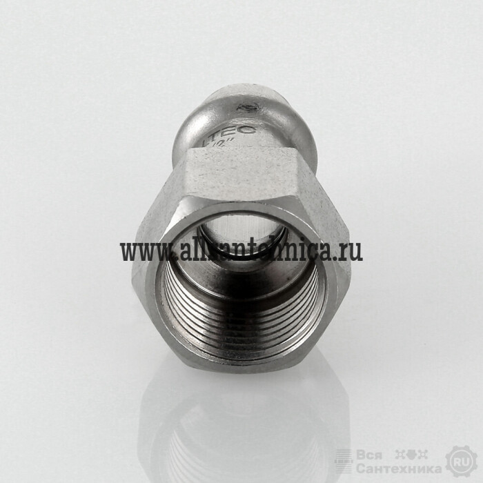 (VTi.902.I) Пресс-фитинг из нержавеющей стали с внутренней резьбой обеспечивает соединение тонкостенной стальной трубы с резьбовым элементом монтируемой системы. Область применения – трубопроводы водоснабжения, отопления, иные инженерные и технологические установки с рабочей температурой до 120 °С и давлением до 16 бар.