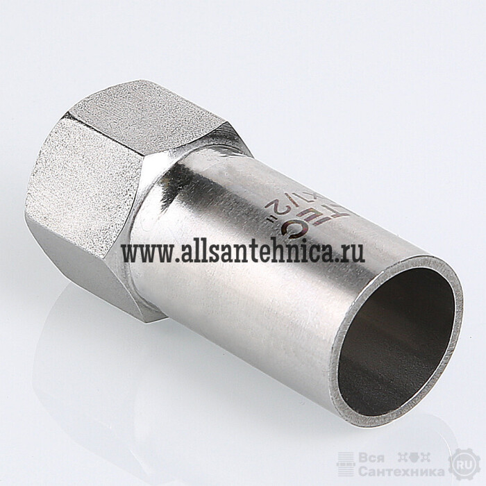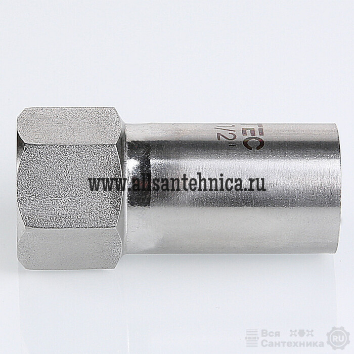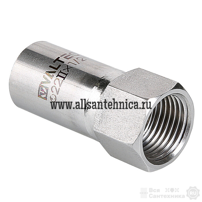 (VTi.907.I) Вставка с внутренней резьбой VTi.907.l предназначена для использования совместно с пресс-фитингом системы VALTEC INOX-PRESS при монтаже трубопровода из нержавеющей стали – для перехода с пресс-соединения на резьбовое. Изделие изготовлено из стали AISI 304.