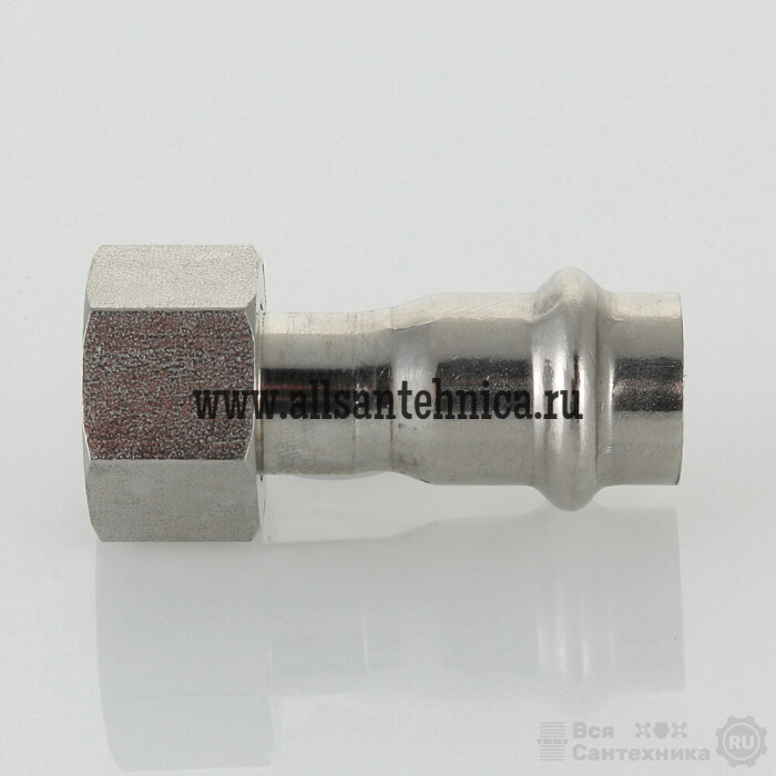 Пресс-соединение – бесштуцерное. Обжатие производится с помощью пресс-инструмента V-профиля. Накидная гайка комплектуется прокладкой.