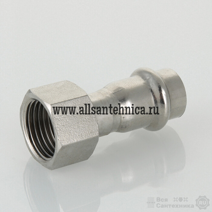 Пресс-соединение – бесштуцерное. Обжатие производится с помощью пресс-инструмента V-профиля. Накидная гайка комплектуется прокладкой.