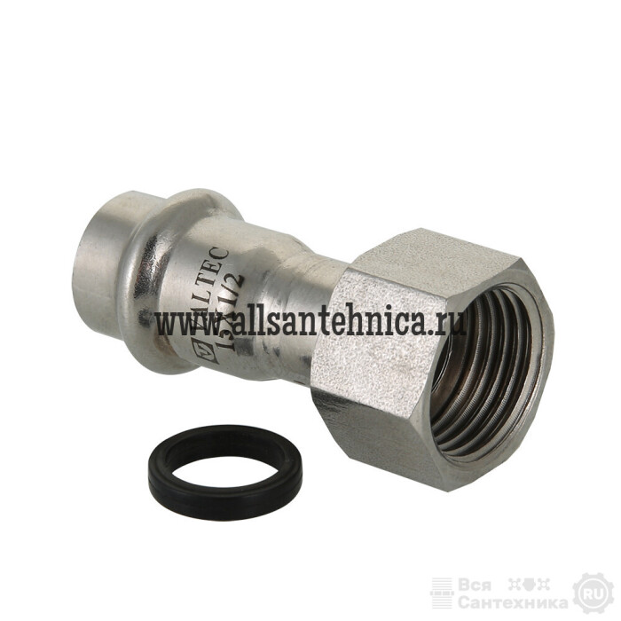 Пресс-соединение – бесштуцерное. Обжатие производится с помощью пресс-инструмента V-профиля. Накидная гайка комплектуется прокладкой.