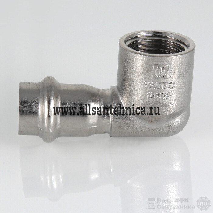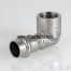 (VTi.952.I) Пресс-угольник из нержавеющей стали с внутренней резьбой обеспечивает соединение тонкостенной стальной трубы с резьбовым элементом монтируемой системы под углом 90°. Область применения – трубопроводы водоснабжения, отопления, иные инженерные и технологические установки с рабочей температурой до 120 °С и давлением до 16 бар.