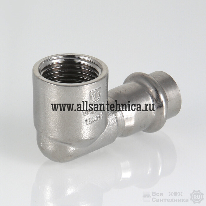 (VTi.952.I) Пресс-угольник из нержавеющей стали с внутренней резьбой обеспечивает соединение тонкостенной стальной трубы с резьбовым элементом монтируемой системы под углом 90°. Область применения – трубопроводы водоснабжения, отопления, иные инженерные и технологические установки с рабочей температурой до 120 °С и давлением до 16 бар.