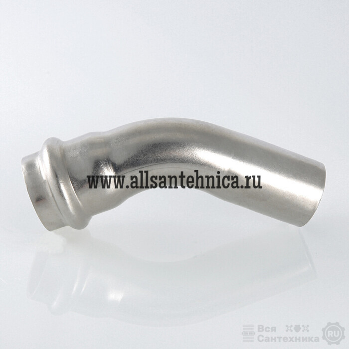 (VTi.958.I) Однораструбный пресс-угольник 45° из нержавеющей стали обеспечивает соединение тонкостенных стальных труб систем водоснабжения, отопления, иных инженерных и технологических установок с рабочей температурой до 120 °С и давлением до 16 бар. Изделие изготовлено из стали AISI 304. Материал уплотнения – эластомер EPDM. Отдельно можно приобрести уплотнительные кольца из FPM (витон); в этом случае максимальная рабочая температура увеличивается до 140 °С.