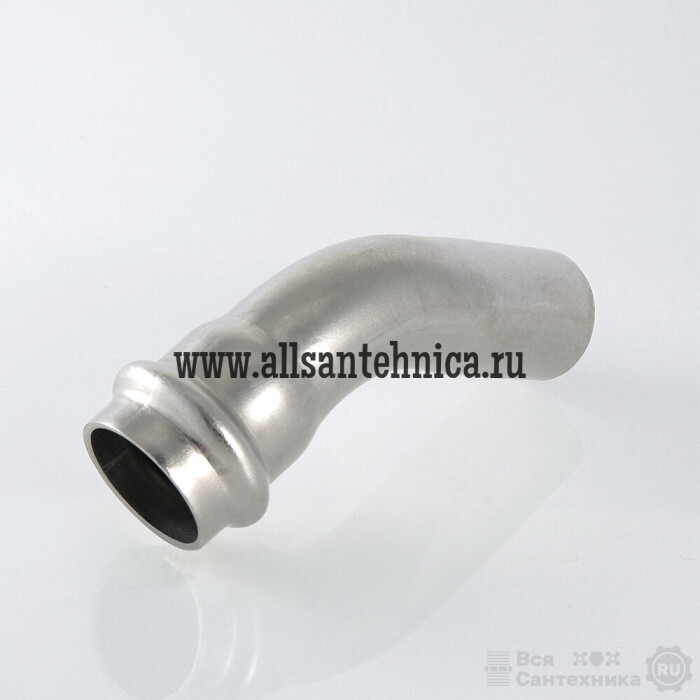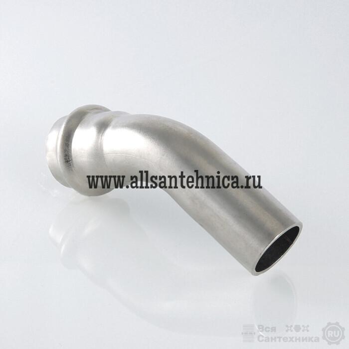 (VTi.958.I) Однораструбный пресс-угольник 45° из нержавеющей стали обеспечивает соединение тонкостенных стальных труб систем водоснабжения, отопления, иных инженерных и технологических установок с рабочей температурой до 120 °С и давлением до 16 бар. Изделие изготовлено из стали AISI 304. Материал уплотнения – эластомер EPDM. Отдельно можно приобрести уплотнительные кольца из FPM (витон); в этом случае максимальная рабочая температура увеличивается до 140 °С.
