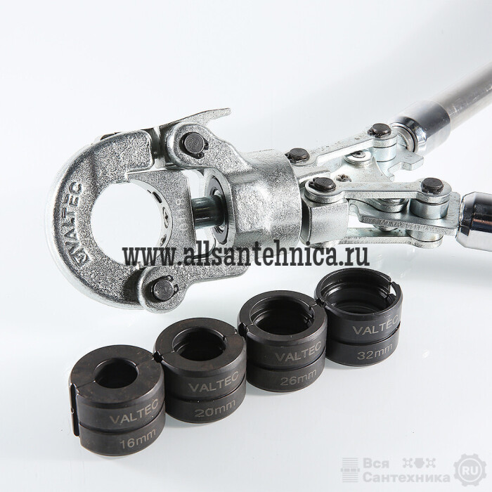 (VTm.293.0) Радиальные клещи для ручного обжатия пресс-фитингов трубопроводных систем из полимерных и металлополимерных труб. Усилие обжатия зависит от длины телескопических рукояток и регулируется также механизмом пресс-головки, которая, кроме того, может поворачиваться относительно рукояток на 360°. Масса пресс-инструмента без насадок – 3,1 кг. Клещи комплектуются насадками с профилем ТН, предназначенными для монтажа пресс-фитингов VALTEC диаметром 16, 20, 26, 32 мм.