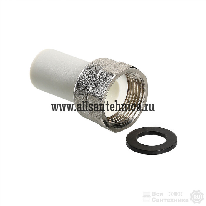 (VTp.722.0) Штуцер полипропиленовый с накидной гайкой. Позволяет подсоединить к трубопроводу из полипропилена элемент системы с резьбовым подключением. Накидная гайка выполнена из латуни, никелирована. Резьба – внутренняя.