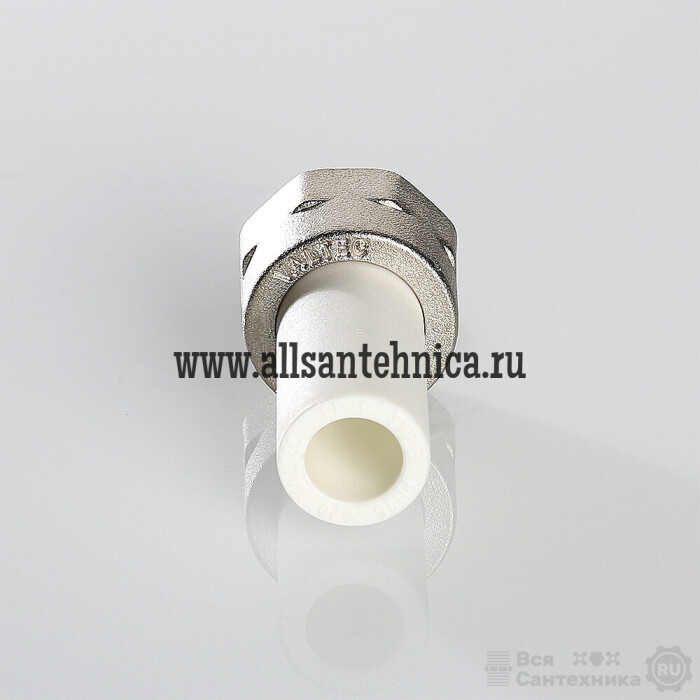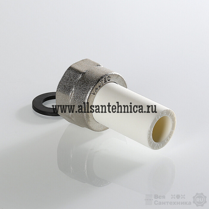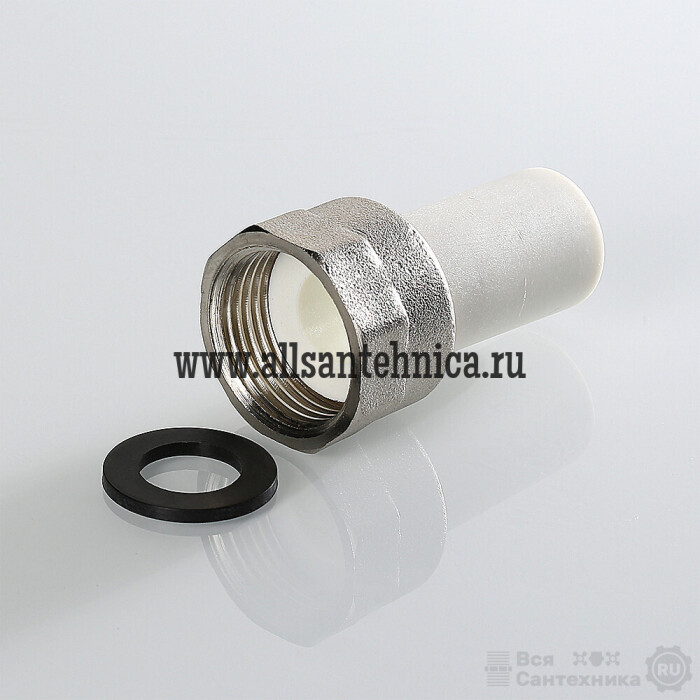 (VTp.722.0) Штуцер полипропиленовый с накидной гайкой. Позволяет подсоединить к трубопроводу из полипропилена элемент системы с резьбовым подключением. Накидная гайка выполнена из латуни, никелирована. Резьба – внутренняя.
