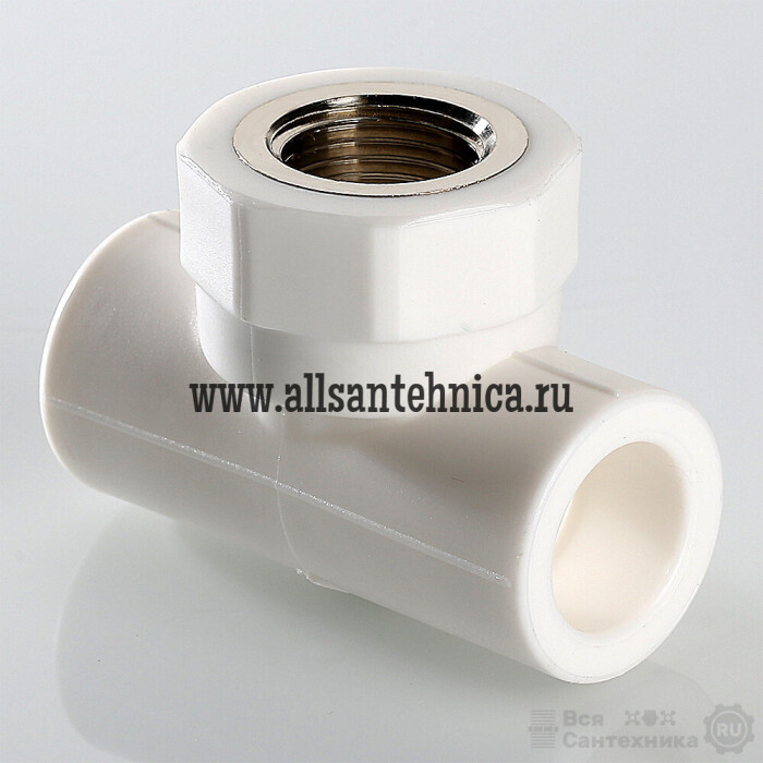 (VTp.732.0) Трехсторонний полипропиленовый фитинг для подсоединения к полипропиленовому трубопроводу компонента инженерной системы с резьбовым подключением. Резьба фитинга – внутренняя трубная по ГОСТу 6357.
