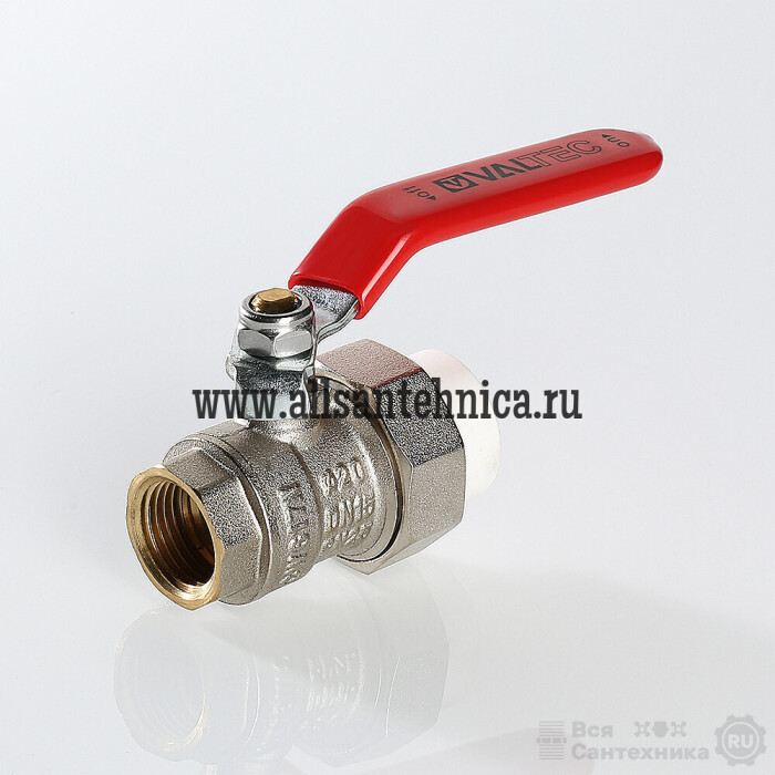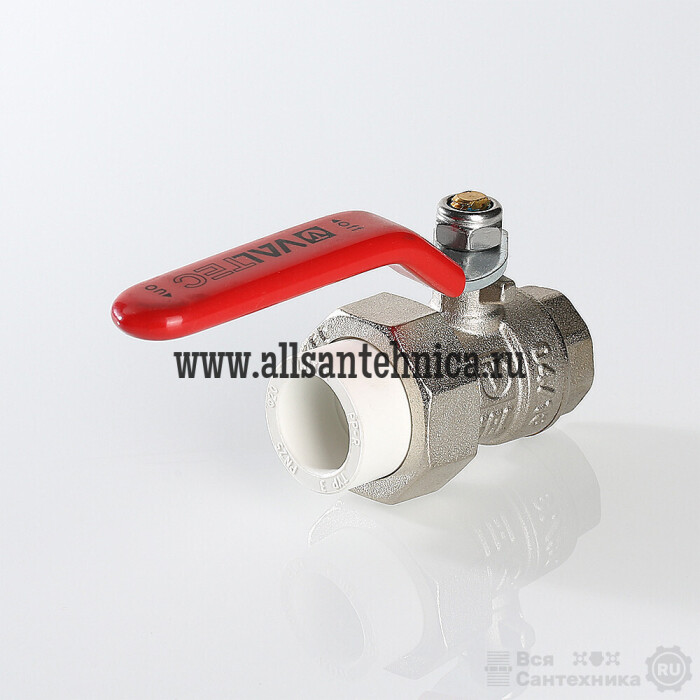 (VTp.742.0) Полнопроходной шаровой кран для использования в качестве запорной арматуры на полипропиленовых трубопроводах систем водоснабжения, включая питьевое, отопления, технологических установок. Переход крана на полипропиленовую трубу осуществляется с помощью накидной гайки, соединение с трубопроводом – раструбной сваркой. Второй патрубок крана имеет внутреннюю резьбу. Рукоятка – флажковая, выполненная из оцинкованной стали с ПВХ-покрытием. Минимальный ресурс крана – 8 тыс. циклов. Максимальная рабочая температура – 90 °С, номинальное давление (PN) – 25 бар.