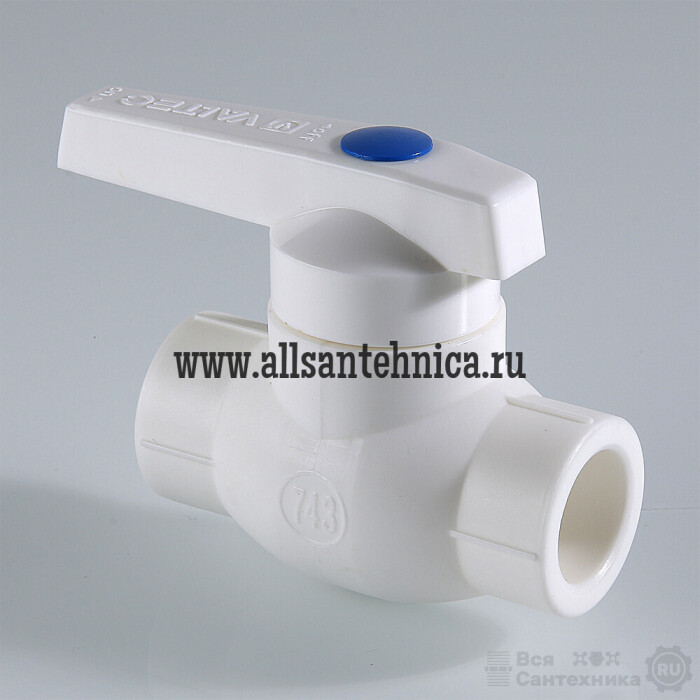 (VTp.743.0) Шаровой кран из полипропилена предназначен для использования в качестве запорной арматуры в составе систем водоснабжения из полипропиленовых труб. Кран имеет латунный хромированный шаровой затвор и латунную сальниковую гильзу. Монтаж осуществляется методом раструбной сварки. Может использоваться на трубопроводах холодной и горячей воды.