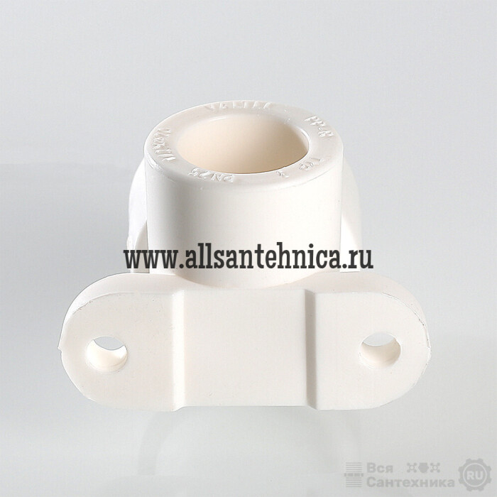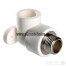 (VTp.755.0) Комбинированный угловой фитинг с креплением (полипропиленовая водорозетка), предназначенный для подсоединения к полипропиленовому трубопроводу сантехнического смесителя или другого компонента инженерной системы с резьбовым подключением. Резьба фитинга – наружная трубная по ГОСТу 6357, 1/2".