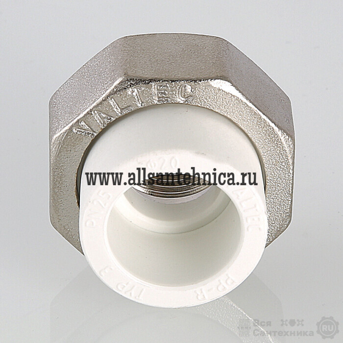 (VTp.762.0) Полипропиленовый фитинг для создания разъемного, с использованием накидной гайки, соединения полипропиленового трубопровода с трубопроводом или арматурой из других материалов. Уплотнительное кольцо выполнено из синтетического каучука EPDM. Резьба фитинга – внутренняя трубная по ГОСТу 6357.