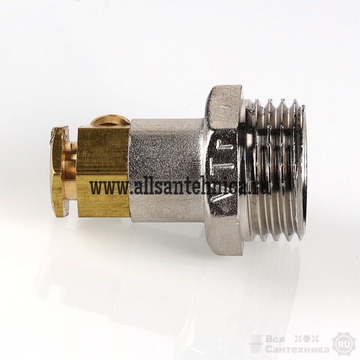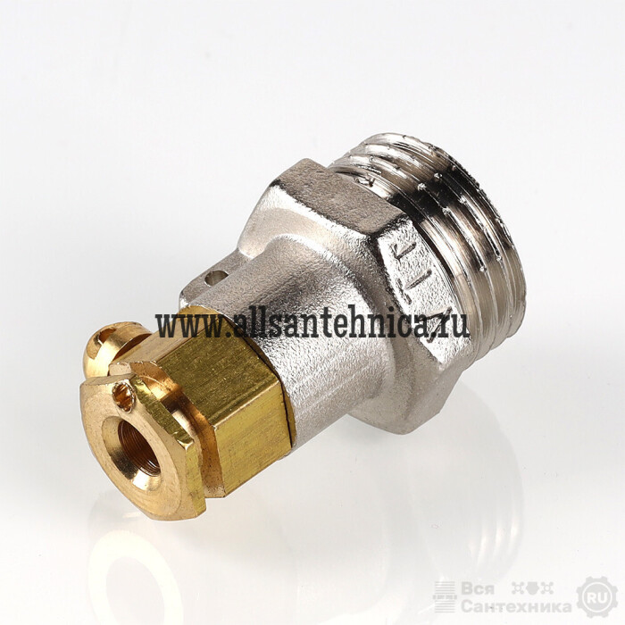 (VTr.424.N.D604) Переходник для подключения датчиков температуры типа DS18S20, поставляющихся в комплекте с универсальными контролерами для смесительных узлов VT.K300.0.0 и VT.K300.W.0, с гильзой диаметром 6 мм, не имеющей интегрированного резьбового элемента. С одной стороны фитинг имеет трубную наружную резьбу диаметром 1/2". Гильза датчика температуры помещается в противоположный патрубок и фиксируется прижимным винтом. Уплотнение гильзы обеспечивается прилагаемым к переходнику кольцом из EPDM.