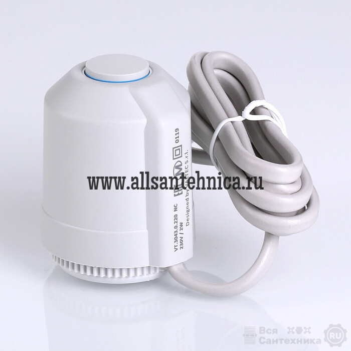 (VT.TE3043.A) Электротермический двухпозиционный сервопривод VT.TE3043 применяется для автоматического управления радиаторным или коллекторным термостатическим клапаном систем водяного отопления (в том числе теплого пола) и охлаждения зданий. Действие привода основано на расширении заполняющего сильфон армированного парафина при протекании электрического тока через встроенный нагревательный элемент по сигналу от комнатного термостата или контроллера.