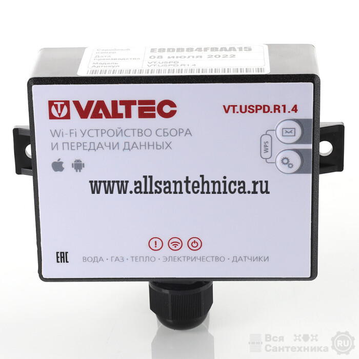 (VT.USPD.R1.4) Устройство сбора и передачи данных (УСПД) предназначено для получения информации о расходе ресурсов от приборов учета с импульсным выходом (водо-, тепло-, газовые счетчики), сигналов от датчиков с выходом типа «сухой контакт» (датчик протечки, температуры, давления и т.п.), приводов трубопроводной арматуры, передачи полученных данных по радиоканалу на сервер для дальнейшей обработки и использования.
