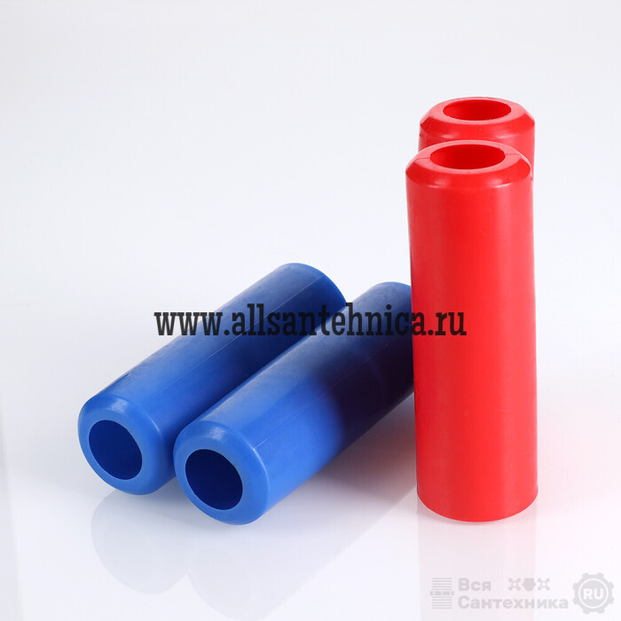 Втулки выпускаются в двух цветах – красном и синем, в двух типоразмерах – для трубы диаметром 16 (теплоизоляция 18 x 6 мм) и 20 (теплоизоляция 22 x 6 мм) мм.