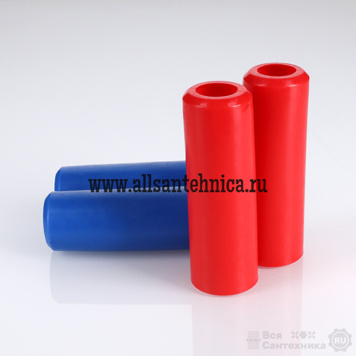 Втулки выпускаются в двух цветах – красном и синем, в двух типоразмерах – для трубы диаметром 16 (теплоизоляция 18 x 6 мм) и 20 (теплоизоляция 22 x 6 мм) мм.