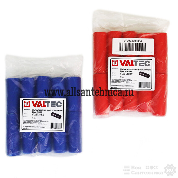 Втулки выпускаются в двух цветах – красном и синем, в двух типоразмерах – для трубы диаметром 16 (теплоизоляция 18 x 6 мм) и 20 (теплоизоляция 22 x 6 мм) мм.