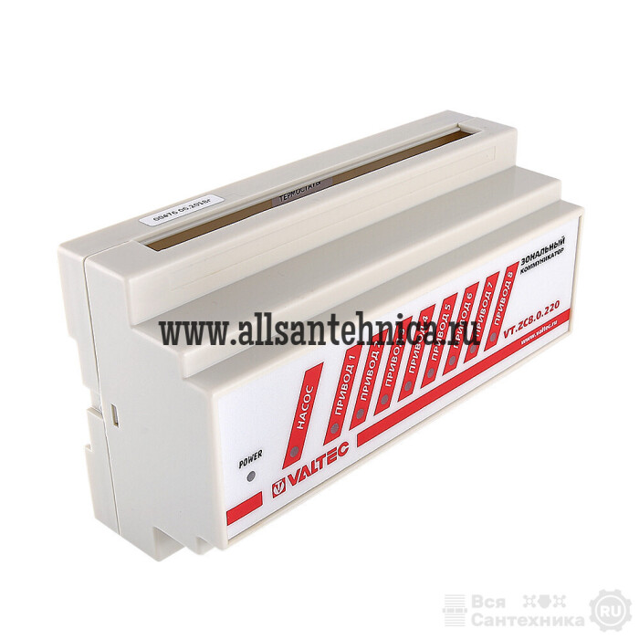 (VT.ZC8.0) Зональный коммуникатор VT.ZC8 служит для передачи сигналов (вкл./выкл.) от комнатных термостатов на сервоприводы термостатических клапанов, управляющих подачей теплоносителя по контурам системы отопления.
