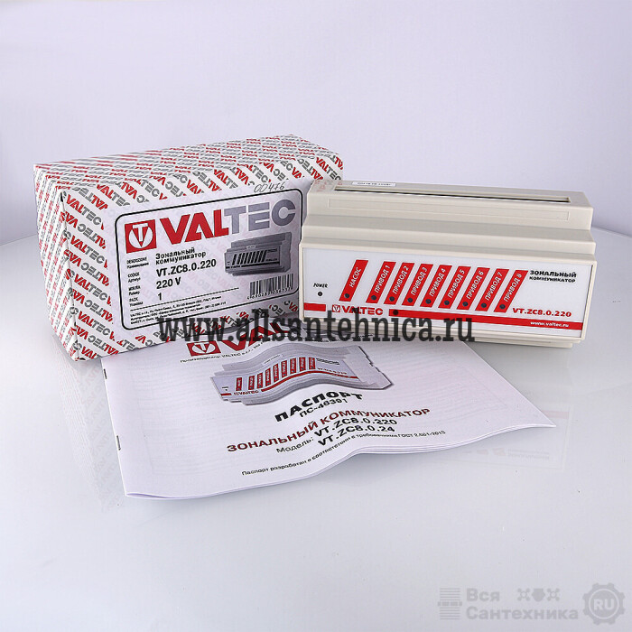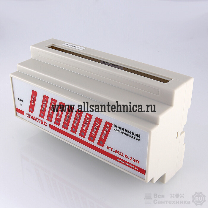 (VT.ZC8.0) Зональный коммуникатор VT.ZC8 служит для передачи сигналов (вкл./выкл.) от комнатных термостатов на сервоприводы термостатических клапанов, управляющих подачей теплоносителя по контурам системы отопления.
