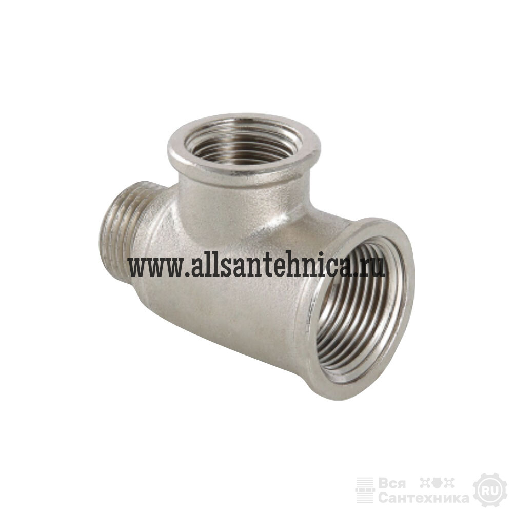 Тройник НИКЕЛИРОВАННЫЙ с переходом на наружную резьбу VALFEX ВР3/4"-ВР3/4"-НР1/2...