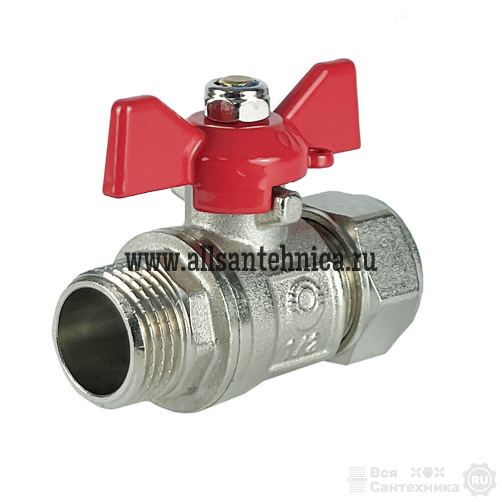 Valfex VF.342.NB.16012 Кран шар. обжимной с переходом на ВР, ручка-бабочка 16х1/2"